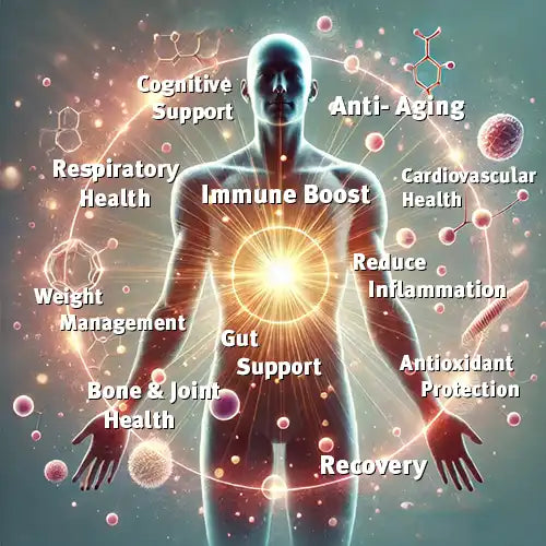 Benefit: Glutathione is a powerful antioxidant that protects cells from oxidative stress and supports immune health by enhancing detoxification processes.